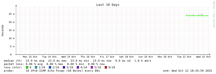 traceroute to 2001:b68:d::28 (2001:b68:d::28), 30 hops max, 80 byte packets - Generated at 2025-10-22 09:15:02