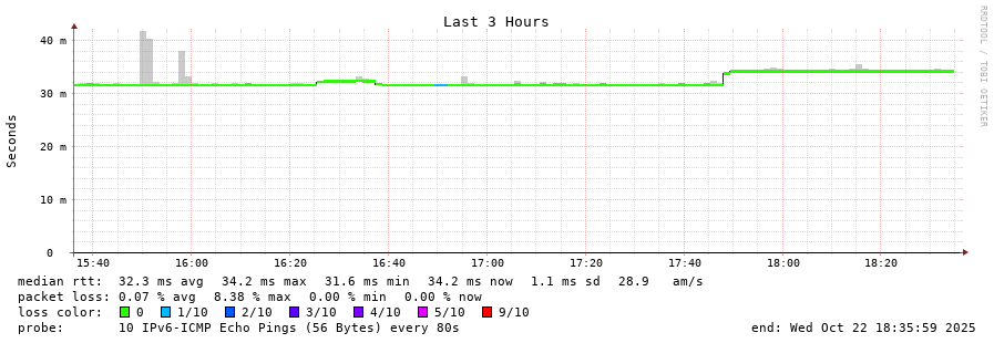 traceroute to 2a0c:9a40:8610:e3f::1 (2a0c:9a40:8610:e3f::1), 30 hops max, 80 byte packets - Generated at 2025-10-22 09:15:02