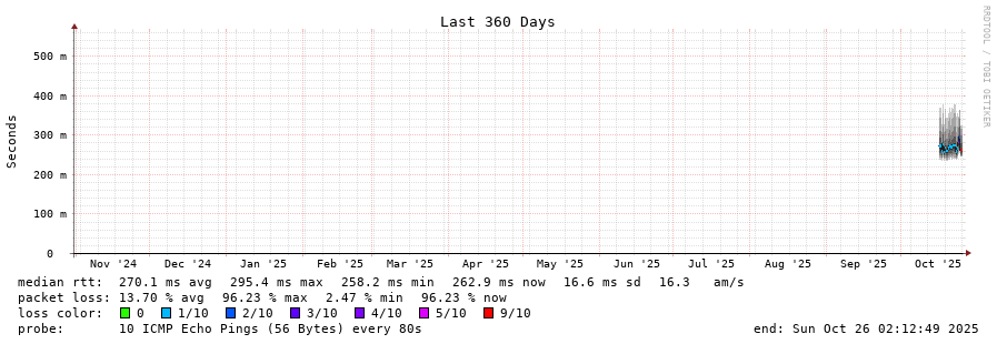 traceroute to 190.104.210.9 (190.104.210.9), 30 hops max, 60 byte packets - Generated at 2025-10-25 05:00:01