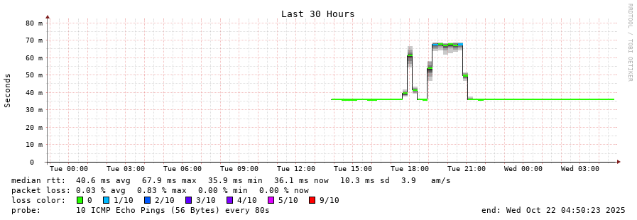 traceroute to 41.226.21.100 (41.226.21.100), 30 hops max, 60 byte packets - Generated at 2025-10-22 04:30:01