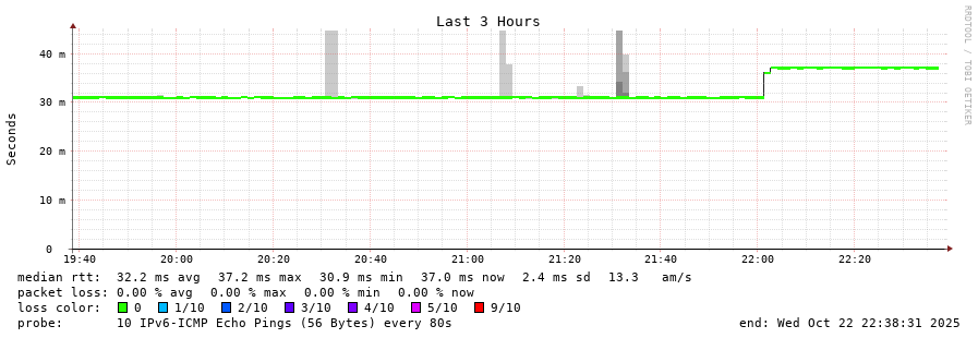 9 > 2a02:2f00:8708::b5 (2a02:2f00:8708::b5) [AS8708] 24.152ms 24.055ms 24.077ms