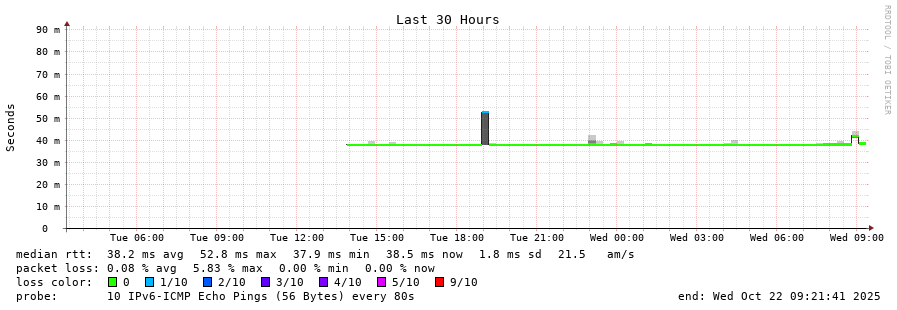 traceroute to 2a03:8f84::f1b6:9702:29c:9062 (2a03:8f84::f1b6:9702:29c:9062), 30 hops max, 80 byte packets - Generated at 2025-10-21 20:30:02