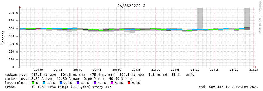 3. Max Roundtrip Time 0.505 seconds